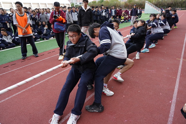 教职工拔河比赛把运动会推向了高潮。平日里站在讲台上传道授业的老师们,此刻变身运动健将,在拔河项目中全力以赴,与学生们共享运动乐趣,不仅展现了教职工活力满满的一面,更拉近了师生距离,让校园充满温情与活力。