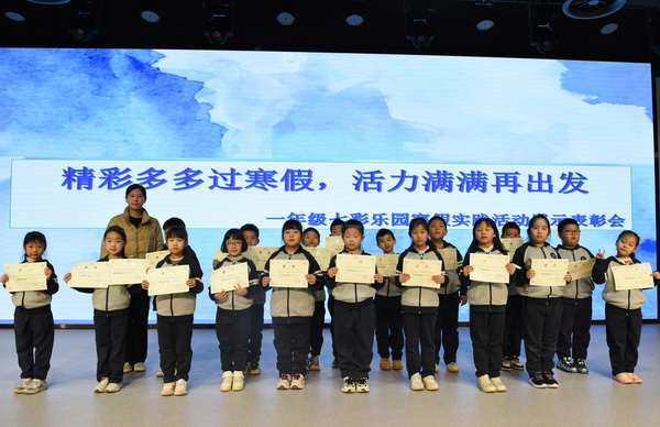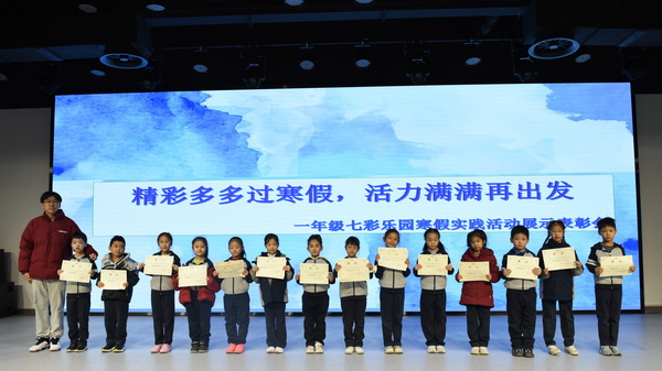 2025年2月24日,小学部开展了以“精彩多多过寒假,活力满满再出发”为主题的一年级七彩乐园寒假实践活动展示表彰会。为8个学科的96名同学颁发寒假实践之星,为全年级12名同学颁发全学科寒假实践活动标兵等证书。
