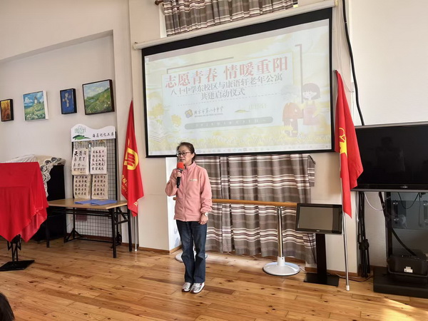 启动仪式上,与会领导先后致辞,对共建志愿服务基地的意义给予高度肯定。康语轩养老集团 CEO 金恩京首先发表致辞,她表示老年公寓始终致力于丰富老人精神文化生活,此次与八十中学东校区的合作,为老人们搭建了与青少年交流互动的桥梁,期待这份青春活力能为养老生活注入更多温暖与生机。