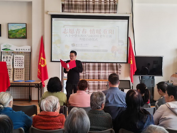 10月31日,“志愿青春 情暖重阳”北京市第八十中学东校区与康语轩养老服务(北京)有限公司共建志愿服务基地启动仪式在康语轩孙河老年公寓举行。孙河乡副乡长李跃、孙河乡社区办副主任尹燕娟、康语轩养老集团 CEO 金恩京、老年公寓院长卓云睛、八十中东校区主管主任李进、德育副主任侯海涛及中小学师生代表与公寓老人欢聚一堂,共同见证这一凝聚爱心时刻。