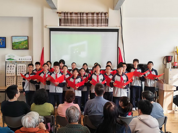 院长和两位奶奶早已在公寓门口等待,那慈祥的目光里满是欢喜。活动中,院长致辞、签署协议、基地揭牌等环节庄重温馨,但最令我动容的是初中部的同学们带来的诗朗诵。当那句“曾几何时,他们也是追风的少年,她们也是逐梦的姑娘”在会场响起时,我看到许多长辈的眼眶湿润了,他们定是在这句话中,回味着自己人生的酸甜苦辣,那些青春岁月仿佛就在昨日。