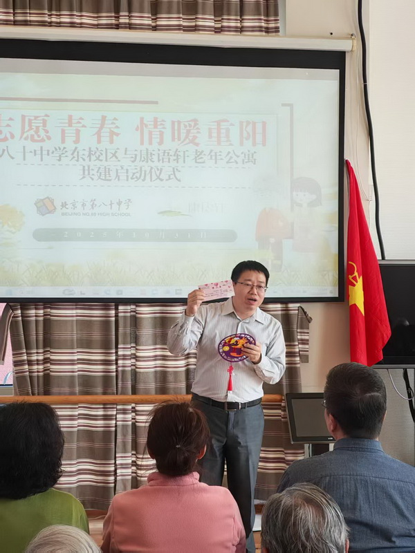 八十中东校区主管主任李进在讲话中强调,学校始终重视学生社会实践与品德教育,共建基地的成立是落实 “立德树人” 根本任务的重要举措,将为学生提供践行尊老敬老美德、提升综合素养的实践平台。