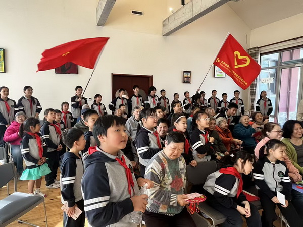 老年公寓温暖静谧,我们一进门先主动和爷爷奶奶们问好,一句句亲切的问候暖意浓浓。活动开始了,二年级的同学们跳起优美的拉丁舞,初中部的哥哥姐姐表演了激情洋溢的诗朗诵。欣赏着我们这些精心准备的节目的爷爷奶奶们脸上洋溢着幸福的微笑,还时不时跟着节奏拍手附和,现场欢身笑语此起彼伏。随后我们拿出提前准备好的绘画、手工作品送到他们手中,愉快的和爷爷奶奶分享我们创作时的巧思。时间飞逝,很快到了活动的尾声,老师、同学们与老人们合影留念,定格下这温馨的瞬间。