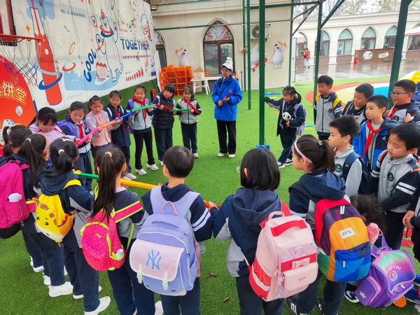 午餐过后,拓展游戏如期开展。同学们以班级为单位,参与了趣味十足的团队协作游戏。在欢声笑语中,大家相互配合、彼此鼓励,不仅锻炼了沟通协调能力与团队凝聚力,更增进了同学间的友谊。活动全程,老师们时刻关注学生安全与状态,配班老师与学生同步参与,适时进行安全提示与文明礼仪引导,确保活动有序开展。