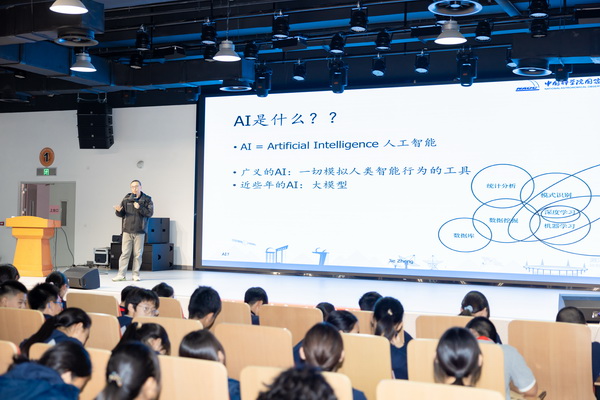 这次讲座的主题是《如何与 “超级大脑” 做朋友》。郑博士首先用通俗的语言为我们解读了 “什么是 AI”——AI通过数学算法挖掘过往数据中的规律,再基于这些规律对未来或未知情况做出预判。我们日常接触的 DeepSeek、豆包、ChatGPT 等,本质上都是“大模型”技术的AI应用。。
