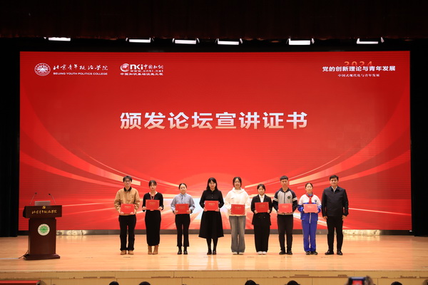 11月30日上午,由北京青年政治学院、北京青少年教育与发展研究基地、同方知网数字出版技术股份有限公司联合举办的“党的创新理论与青年发展”论坛在北京青年政治学远举行,我校范晓琼副书记、思政教师史达为、姜鹤遥和高二学生崔清汉等学生参加。崔清汉作为高中学生代表在青年学子论坛上作报告。