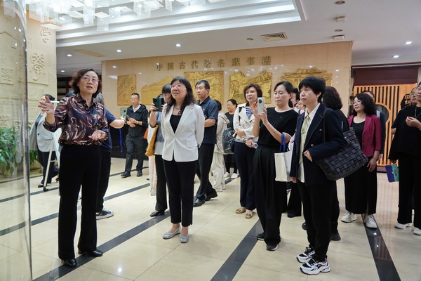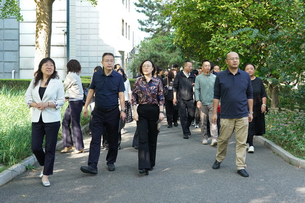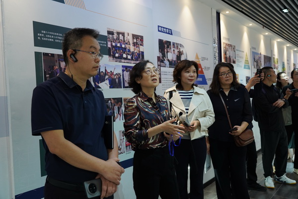 活动伊始,宫丹主任担任“向导”,带领高研班一行先后参观了学校党员活动室、党建文化长廊、数字党建平台、图书馆及校史馆等场所。每到一处,宫丹主任均结合图文展板、数字演示、实物陈列等形式,详细介绍了八十中办学与党建工作的特色与成果。参观过程中,高研班学员不时驻足询问,对学校“将党建工作融入校园每一处空间、渗透教育每一个环节” 的做法给予高度认可。