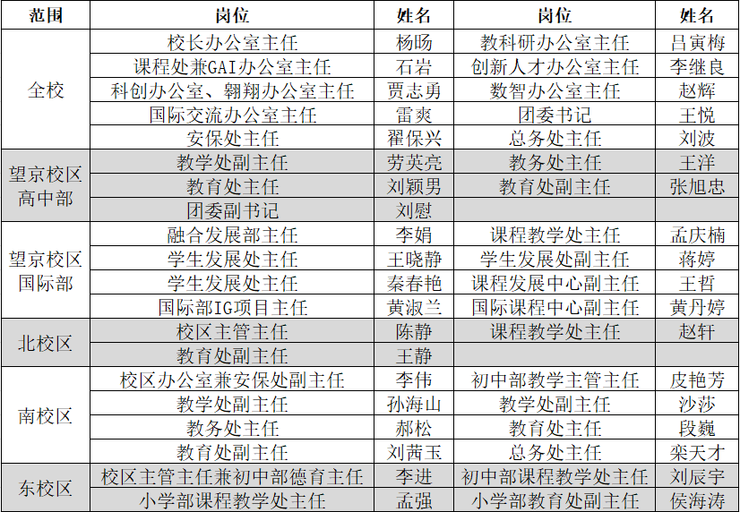 北京市第八十中学干部名单(处室主任)