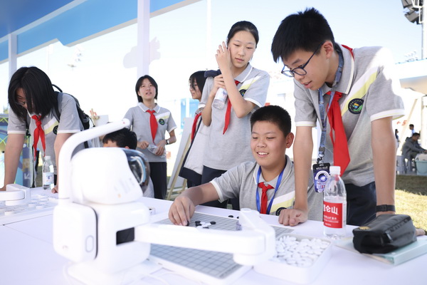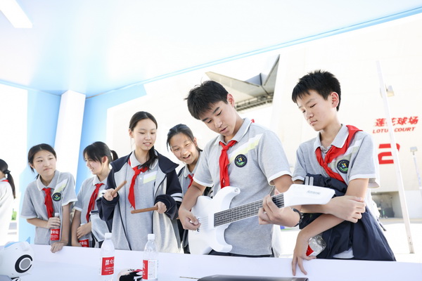 在球场外的体验区,同学们饶有兴趣地参观了各种体育机器人,亲自感受了AI加持下的体育焕发出的神奇魅力。一声声惊叹与赞美,让一颗颗青春的心,开启了梦想的律动。