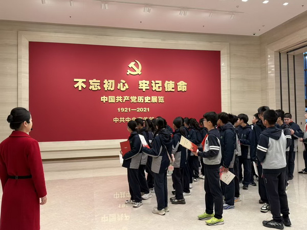 2025年12月18日,北京市第八十中学北校区初二年级全体师生走进中国共产党历史展览馆,开启了一场意义深远的研学之旅。庄严肃穆的展馆内,珍贵文物、生动史料和翔实图片相互交织,将党的百年征程映在眼前,一堂沉浸式的“大思政课”就此开讲。