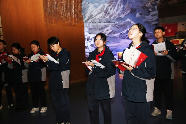 步入展厅内,时光仿若回溯。在“长征主题”展区,那双磨破鞋底的草鞋,让同学们屏息凝神。棉布的破洞是岁月的低语,引我们遥想雪山草地间,先辈们深一脚浅一脚的坚毅步履。玻璃展柜后的长征路线图蜿蜒如脉,我们忽然读懂:这条曲线不仅串联起瑞金与延安的地理坐标,更在精神维度上,将百年前的奋斗者与今日的我们紧紧相连。
