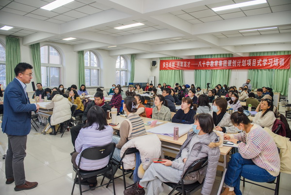 活动当天,朝阳区教育科学研究院副院长曾庆玉到会指导,八十中教育集团校长任炜东接待了专家团队。来自八十中南、北、东三个校区的全体干部教师,以及朝阳区未来实验学校、八十中温榆河分校、睿德分校、嘉源分校、枣营分校、北皋分校,陈经纶中学分校,金地实验学校等集团校的干部教师,还有白家庄小学的教师们,共同参与了本次培训。八十中南校区教学处、总务处、办公室为本次培训活动的顺利进行,做了大量细致地准备工作。
