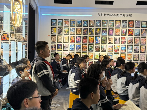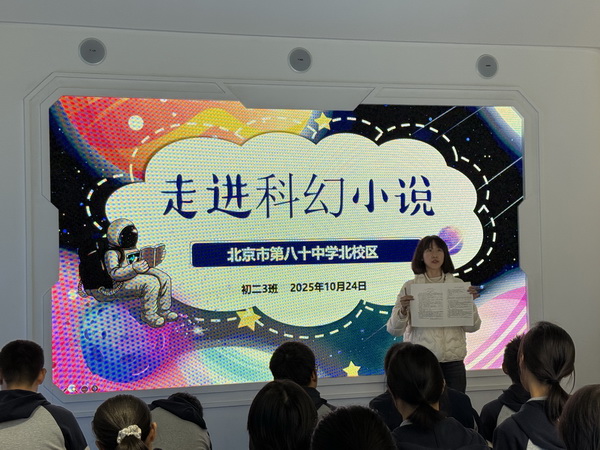 科幻主题展厅内,一场特别的课堂吸引了北校区初二3班同学们的目光。八十中初二语文教师韩蕙阳以“走进科幻小说”为主题,结合展厅内的科幻作品,带领同学们走进奇妙的科幻小说世界。韩老师以两篇科幻微小说为依托,带同学们认识了科幻小说这一体裁,随后,韩老师为大家讲解了科幻作品中蕴含的科学原理与未来设想,引导同学们思考科技与人类生活的关系。同学们听得专注,不时举手提问,在交流中拓宽了想象边界,对未来科技发展更加充满期待。