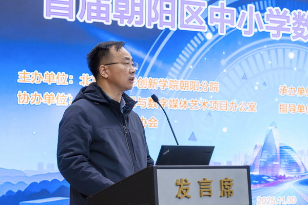 AIGC艺术家刘志明、朝阳区青少年活动中心白建立主任相继发言。刘老师分享了自己运用AI实现影视梦想的经历和感悟;白建立主任在致辞中指出,本次活动是朝阳区推进美育与科技融合的一次成功实践。参展作品兼具艺术表现力与思想内涵,展现了学生优秀的艺术素养与创新意识。未来,朝阳区将持续深化美育改革,推广“艺术+科技”融合教育模式,搭建更多实践平台,为青少年创造更多实践机会。最后,北京教育科学研究院基础教育教学研究中心美术教研室陶涛主任作总结发言,对本次活动的创新理念和丰硕成果给予高度评价。