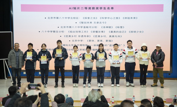 北京市第八十中学在“艺术+AI”教育领域已有长期实践积累。学校依托朝阳区创新工作室、朝阳名师工作室等平台,联合中央美术学院、北京师范大学、北京电影学院等高校专家,组建专业指导教师团队。学校开设了数字影像、AI艺术创作等特色课程,为学生提供了系统的数字艺术学习和实践机会。两年来,在高校专家、影视公司及人工智能领域专家的指导下,学校在“AI+设计”“AI+影视”的探究实践中不断进步,培养了一批具备数字素养和创新能力的优秀学生。