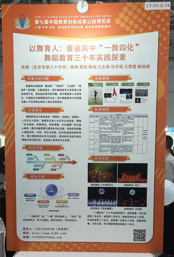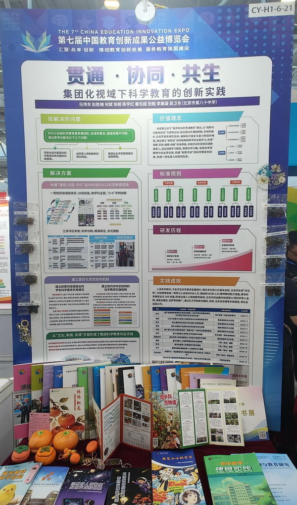 在本届教博会上,北京市第八十中学展示的教育创新成果受到广泛关注,其中包括:任炜东校长主持的《贯通·协同·共生——集团化视域下科学教育的创新实践》,从集团化视角出发,创新科学教育模式;沈璟老师主持的《指向科学探究素养培育的高中生物实验课程构建》,致力于通过科学的课程设计,提升学生的科学探究素养;叶地凤老师主持的《“境润式”戏剧育人十年实践探索》,以戏剧为手段滋养学生成长,助力语文教学;肖燕老师主持的《以舞育人:普通高中“一舞四化”舞蹈教育三十年实践探索》,以舞蹈教育为载体,多元探索,实现育人目标。