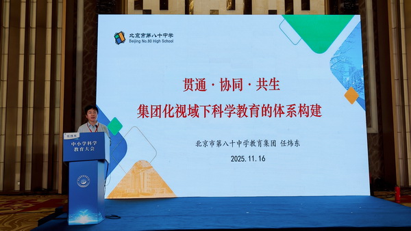 任炜东校长在本次教博会“中小学科学教育大会”上做主题发言《贯通·协同·共生——集团化视域下科学教育的创新实践》。本次教博会特为八十中设立专属展区,集中呈现学校“卓越・多元”的课程体系与教学实践成果,充分彰显了我校在教育教学创新领域的深厚积淀与突出成效。其中,我校初中数学教研组携数学建模课程成果也亮相展会现场,与到场专家、教育同仁深度交流分享,相关实践经验与创新思路引发热烈探讨,获得了现场专家与同行的一致赞誉。