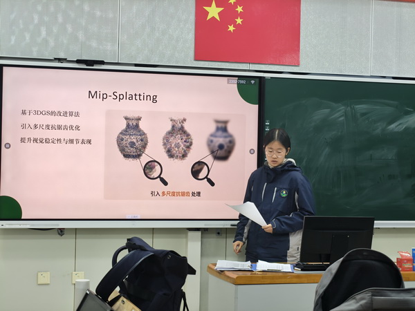 此外,参与答辩的学员还带来了多个跨领域优质课题:赖锦熙、傅梓宸同学分别以《基于 3D Gaussian Splatting 的三维图形重建》《基于三维高斯泼溅的校园部分场景重建》为题,在清华大学软件学院刘玉身教授指导下,探索三维计算机视觉与人工智能技术的创新应用;刘国槿、叶桓晨同学合作开展《关于控制飞行姿态及落点的小型低空喷射飞行器研究》,依托北京动力机械研究所李学硕教授的指导,深耕固体火箭发动机技术领域;张德栎同学的课题《脑机接口等高科技出口管制人才需求及培养调研》,由中科院软件所田丰教授指导,聚焦人机交互领域的人才培养焦点;石景然同学的信息安全课题、郑子健同学的人工智能图像应用课题等,均展现了学员们在前沿科技领域的探索热情与实践能力。