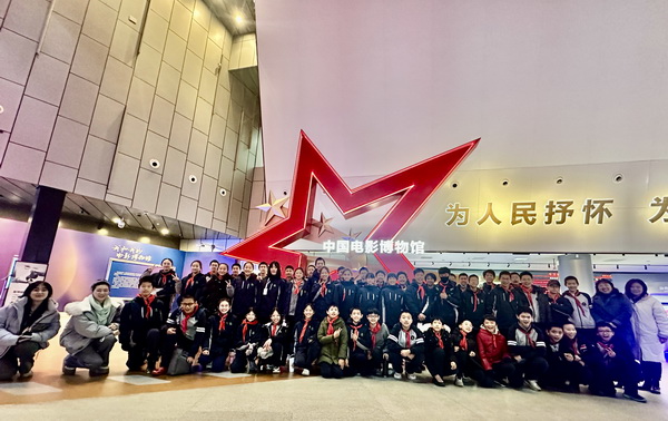 为深入贯彻《中华人民共和国爱国主义教育法》,教育引导广大少先队员传承红色基因,北京市第八十中学积极响应全国少工委号召,启动“红领巾的光影记忆”爱国主义教育主题观影活动,以青少年喜闻乐见的光影形式,通过观看优秀爱国主义题材影片宣扬正确的历史观和价值导向,厚植新时代首都少先队员的爱国主义情怀。2025年12月12日下午,在我校党委喻江书记带领下,部分党员教师、入团积极分子以及少先队员走进中国电影博物馆,开展“红领巾心向党 光影铸魂育新人”主题观影实践活动。
