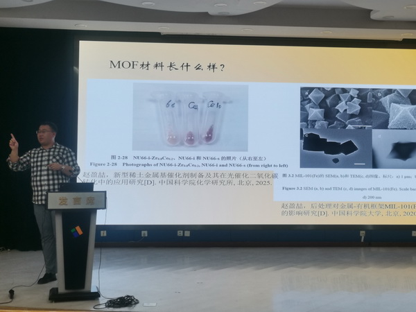 午间科普讲坛第26讲由化学组赵盈喆老师主讲。赵老师从刚刚揭晓的化学诺贝尔奖主题出发,带领同学们探索了金属有机框架材料的奥秘。从宏观到微观,从制备到应用,赵老师用通俗的语言向同学们讲述了这种神奇材料的发展。同学们也感觉到,诺奖与自己的距离不再那么遥远。讲座之后,也有同学意犹未尽,想要进一步从文献中获取信息。本次讲座将科研前沿与高中知识相结合,激发了同学们学习化学的的兴趣和对未知事物的探索热情。
