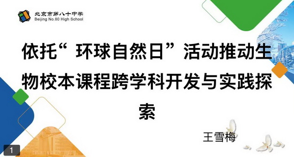 最后一期培训探索“跨学科主题学习”。王雪梅老师分享了依托“环球自然日”活动开发初中生物跨学科校本课程的实践,实现了竞赛、课程与评价方式的创新融合。