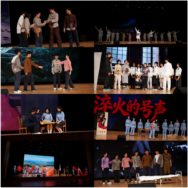 在戏剧中,我们重回正面战场,看见"锋刃出鞘、血染山河"的壮烈,感受到"一寸山河一寸血"的滚烫赤诚;在戏剧中,我们潜入敌后和地下战场,听见"暗战无声、信仰不灭"的心跳,触摸到"于无声处听惊雷"的坚定执着;在戏剧中,我们走进各界支援的洪流,见证"众志成城、共赴国难"的担当,体会到"岂曰无衣,与子同袍"的民族深情;在戏剧中,我们驻足文脉传承的长廊,铭记"铭记伤痛、守护根魂"的使命,领悟到"斯文在兹,生生不息"的坚韧力量。同学们在戏剧中演绎了烽火岁月的青春回响,展现出中华儿女勠力同心、共赴国难的身影;感受到火光跳动,号声嘹亮,耳畔响起先辈们穿越时空、振聋发聩的呐喊。