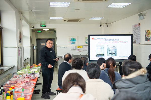活动以“品味校园创新菜肴,家校共筑健康食光”为主题,搭建家校沟通桥梁。学校食品营养师阿宇晗老师重点汇报了南校区校园餐工作,为家长介绍了食材采购与智慧食堂建设成效:食堂食材供应链纳入区教委大宗采购系统,确保源头可溯;作为朝阳区首批智慧食堂试点,实现供餐全流程数字化监管,家长可通过APP缴费、查看学生每日食谱。品鉴环节中,多款符合健康烹饪理念的创新学生餐获家长赞誉。