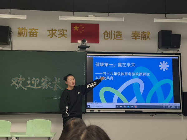 体育刘老师和魏老师详细解读了北京体育中考和四、六年级体测相关政策,明确二年级是学生运动习惯养成、体质基础夯实的关键期,介绍了学校每日2小时体育活动、课间15分钟锻炼、班级体育联赛等保障举措,提出了家庭锻炼、饮食管理、运动兴趣培养的实操建议。